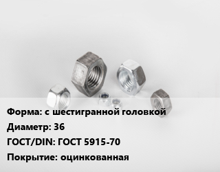 Гайка с шестигранной головкой D=36 ГОСТ 5915-70 оцинкованная