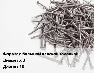 Гвоздь с большой плоской головкой 3х16 белый цинк, чертеж 7811-7094, кг цена от 144.24 ₽ / кг, где купить, условия доставки в Тюмени и Тюменской области