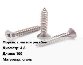 Саморез с частой резьбой D=4.8 L=100 сталь, шт, для металла цена от 2.44 ₽ / кг, где купить, условия доставки в Тюмени и Тюменской области