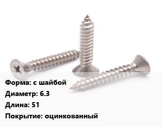 Саморез с шайбой D=6.3 L=51 оцинкованный