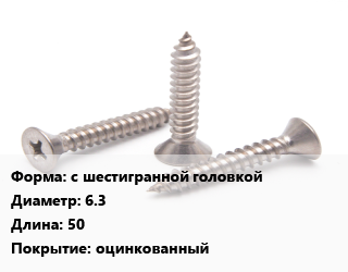Саморез с шестигранной головкой D=6.3 L=50 оцинкованный