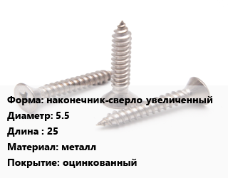 Саморез наконечник-сверло увеличенный D=5.5 L=25 металл оцинкованный, упаковка 420 шт цена от 1 233 ₽ / кг, где купить, условия доставки в Тюмени и Тюменской области