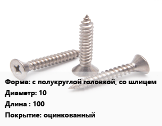 Саморез с полукруглой головкой, со шлицем D=10 L=100 оцинкованный, кг цена от 21.6 ₽ / кг, где купить, условия доставки в Тюмени и Тюменской области