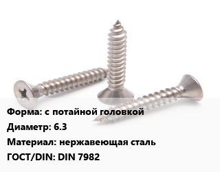 Саморез с потайной головкой D=6.3 нержавеющая сталь ГОСТ: DIN 7982