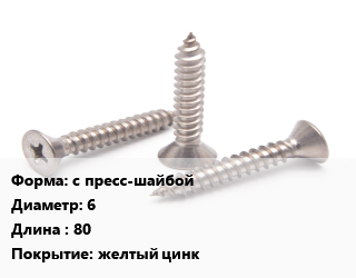 Саморез с пресс-шайбой D=6 L=80 желтый цинк, упаковка 1300 шт цена от 1 542 ₽ / кг, где купить, условия доставки в Тюмени и Тюменской области