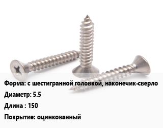 Саморез с шестигранной головкой, наконечик-сверло D=5.5 L=150 оцинкованный, шт цена от 7.05 ₽ / кг, где купить, условия доставки в Тюмени и Тюменской области