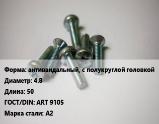 Винт антивандальный, с полукруглой головкой 4.8х50 ART 9105 Сталь: A2, цена за шт, кг цена от 73.29 ₽ / кг, где купить, условия доставки в Тюмени и Тюменской области
