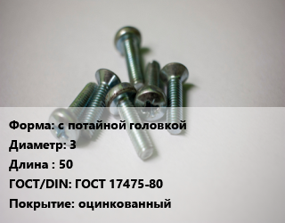 Винт с потайной головкой 3х50 ГОСТ 17475-80 оцинкованный, упаковка 1000 шт, кг цена от 545.46 ₽ / кг, где купить, условия доставки в Тюмени и Тюменской области