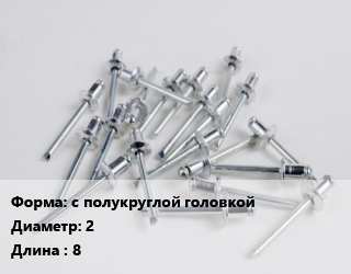 Заклепка с полукруглой головкой 2х8 нержавеющая сталь ГОСТ: DIN 660