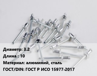 Заклепка 3.2х10 алюминий, сталь ГОСТ: ГОСТ Р ИСО 15977-2017