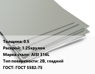 Лист нержавеющий 0.5 1.25хрулон Сталь: AISI 316L Тип:2B, гладкий ГОСТ 5582-75, по запросу цена от 446 335 ₽ / т, где купить, условия доставки в Тюмени и Тюменской области