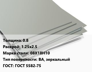 Лист нержавеющий 0.8 1.25х2.5 Сталь: 08Х18Н10 Тип:BA, зеркальный ГОСТ 5582-75, х/к цена от 353 655 ₽ / т, где купить, условия доставки в Тюмени и Тюменской области