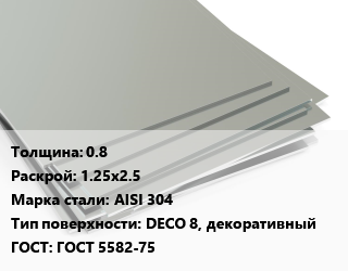 Лист нержавеющий 0.8 1.25х2.5 Сталь: AISI 304 Тип:DECO 8, декоративный ГОСТ 5582-75, Германия,Китай цена от 526 864 ₽ / т, где купить, условия доставки в Тюмени и Тюменской области