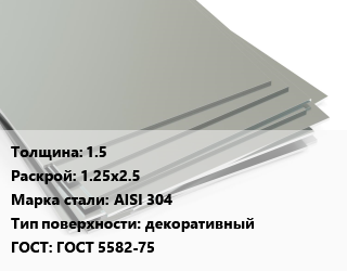 Лист нержавеющий 1.5 1.25х2.5 Сталь: AISI 304 Тип:декоративный ГОСТ 5582-75