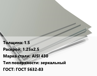 Лист нержавеющий 1.5 1.25х2.5 Сталь: AISI 430 Тип:зеркальный ГОСТ 5632-83, шт, х/к цена от 8 307 ₽ / т, где купить, условия доставки в Тюмени и Тюменской области