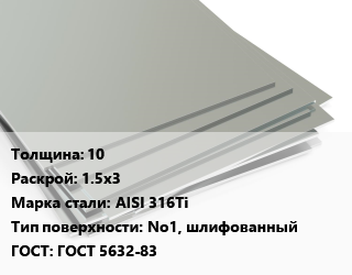 Лист нержавеющий 10 1.5х3 Сталь: AISI 316Ti Тип:No1, шлифованный ГОСТ 5632-83