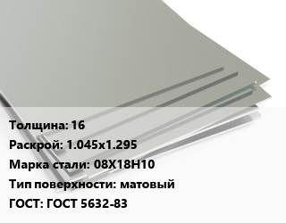 Лист нержавеющий 16 1.045х1.295 Сталь: 08Х18Н10 Тип:матовый ГОСТ 5632-83