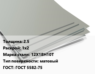Лист нержавеющий 2.5 1х2 Сталь: 12Х18Н10Т Тип:матовый ГОСТ 5582-75, шт цена от 24 375 ₽ / т, где купить, условия доставки в Тюмени и Тюменской области