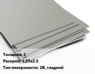 Лист нержавеющий 2 1.25х2.5 Тип:2B, гладкий