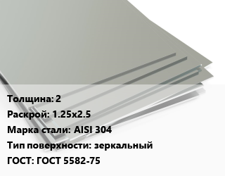 Лист нержавеющий 2 1.25х2.5 Сталь: AISI 304 Тип:зеркальный ГОСТ 5582-75