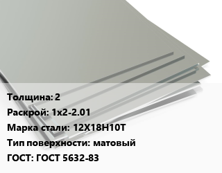 Лист нержавеющий 2 1х2-2.01 Сталь: 12Х18Н10Т Тип:матовый ГОСТ 5632-83