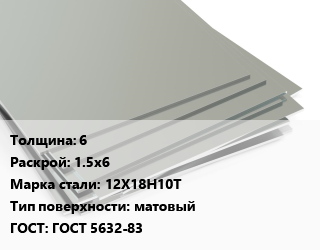 Лист нержавеющий 6 1.5х6 Сталь: 12Х18Н10Т Тип:матовый ГОСТ 5632-83, г/к, Мечел цена от 352 846 ₽ / т, где купить, условия доставки в Тюмени и Тюменской области